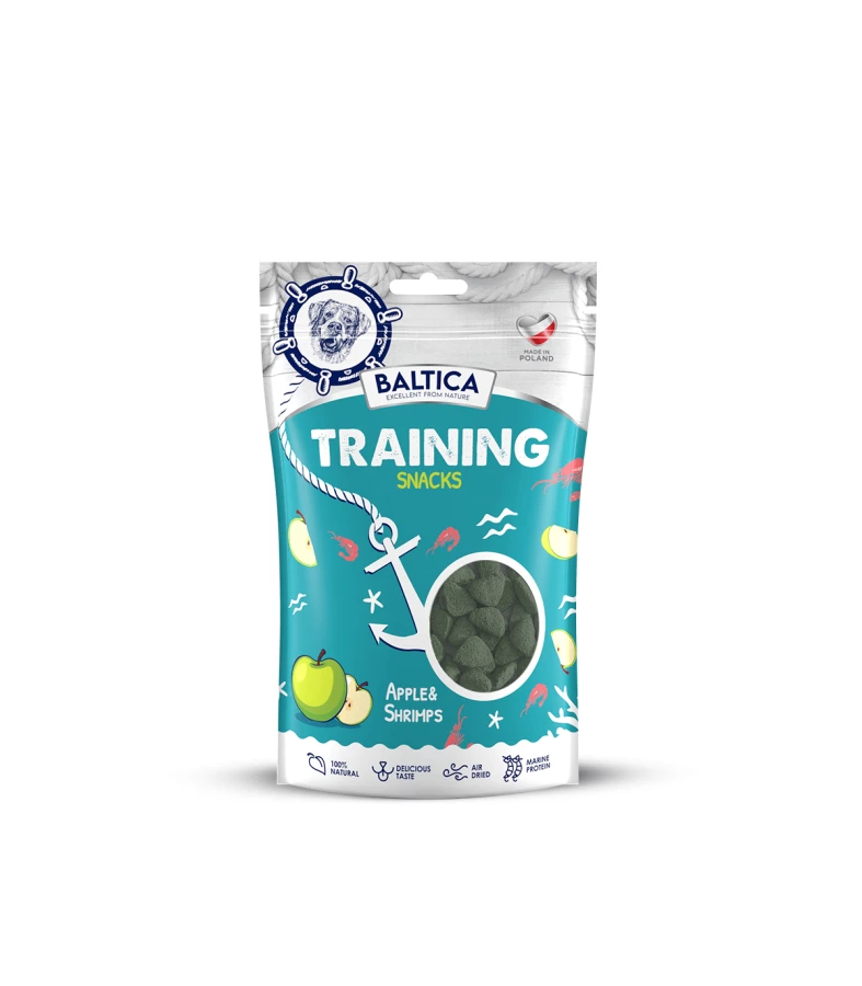 100% naturalne przysmaki treningowe będące niezwykle smacznym połączeniem krewetek i jabłek. Zawarte w krewetkach wysokowartościowe, łatwo przyswajalne białko charakteryzuje się wysoką strawnością i korzystnym składem aminokwasów. Jabłka wspierają układ trawienny, ułatwiając pracę jelitom. Zawierają wiele minerałów m.in. potas, cynk, żelazo, krzem jak również witamin: A, C i E.