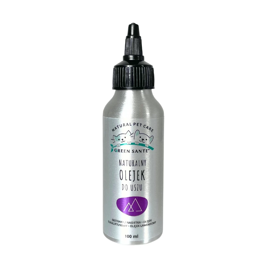 Olejek do uszu GREEN SANTE® to pełna natury receptura, stworzona wyłącznie z naturalnych składników i olejów roślinnych. Nie zawiera żadnych sztucznych barwników, silikonów, parabenów, olei mineralnych ani PEG/PGG, gwarantując czystą i bezpieczną pielęgnację dla Twojego pupila.