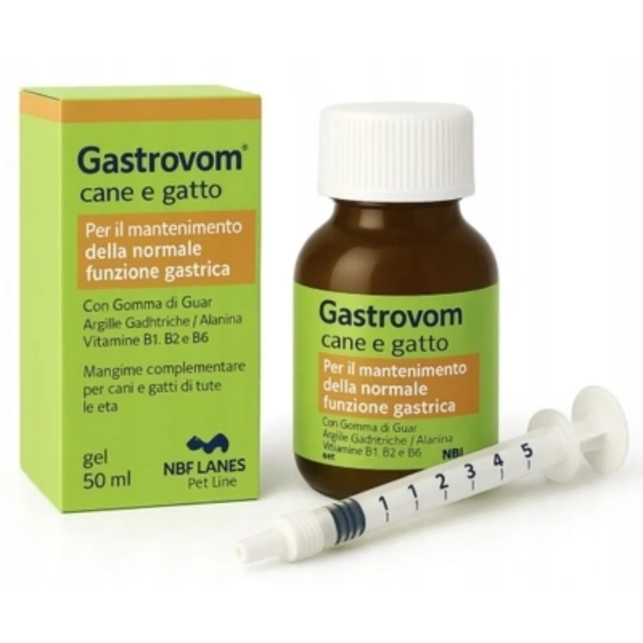 Gastrovom to suplement diety w postaci płynnej galaretki o wiskoelastycznej konsystencji, która przyczynia się do prawidłowego funkcjonowania przewodu pokarmowego i utrzymania prawidłowych warunków kwasowościowych żołądka. Wspomaga również normalne funkcjonowanie błony śluzowej żołądka. Stosowanie żelu Gastrovom jest również wskazane w przypadku nudności i kinetozy (choroby ruchowej) u psów i kotów.