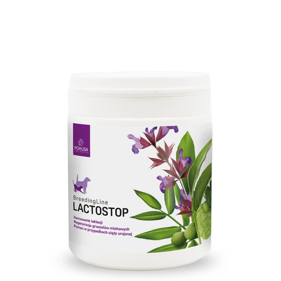 Preparat wspomagający zahamowanie laktacji. Składniki aktywne wykazują działanie ochronne oraz regeneracyjne gruczołów mlekowych. LactoStop może być stosowany jako środek wspomagający w przypadku ciąży urojonej. Szałwia lekarska obniża laktację, wzmacnia ochronę przeciwdrobnoustrojową. Szyszka chmielu posiada substancje o właściwościach uspokajających, bakteriostatycznych, estrogennych. Liść orzecha włoskiego regeneruje komórki gruczołu mlekowego w okresie zasuszania gruczołów mlekowych. Stosować maksymalnie 7 dni.