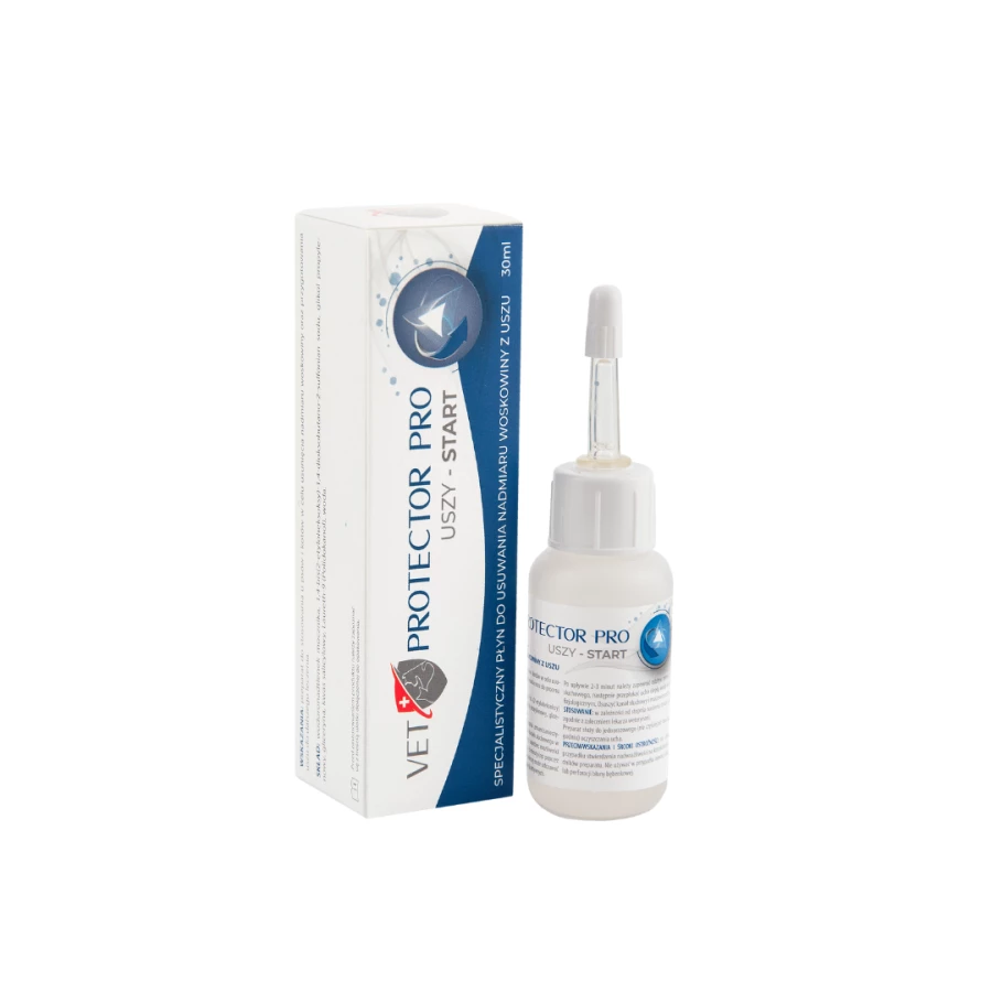 VET PROTECTOR PRO USZY – START – preparat do wstępnego oczyszczenia silnie zabrudzonego kanału słuchowego psów i kotów.